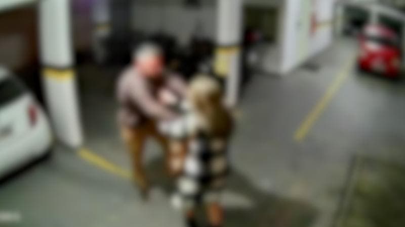 Já do lado de dentro, na garagem do edifício, ele volta a empurrá-la diversas vezes e, minutos depois, tira um revólver da cintura. É neste momento que aparece o policial, morador do condomínio em que ocorreu a briga. Veja: