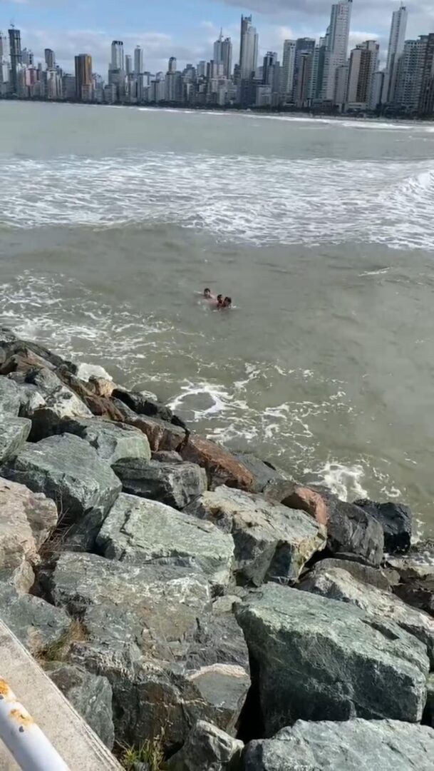 Um policial militar se lançou ao mar na tarde deste domingo (9) ao flagrar uma criança sendo arrastada pela correnteza em Balneário Camboriú. O soldado fazia patrulhamento preventivo no Molhe da Barra Norte quando se deparou com a situação e agiu rapidamente.
