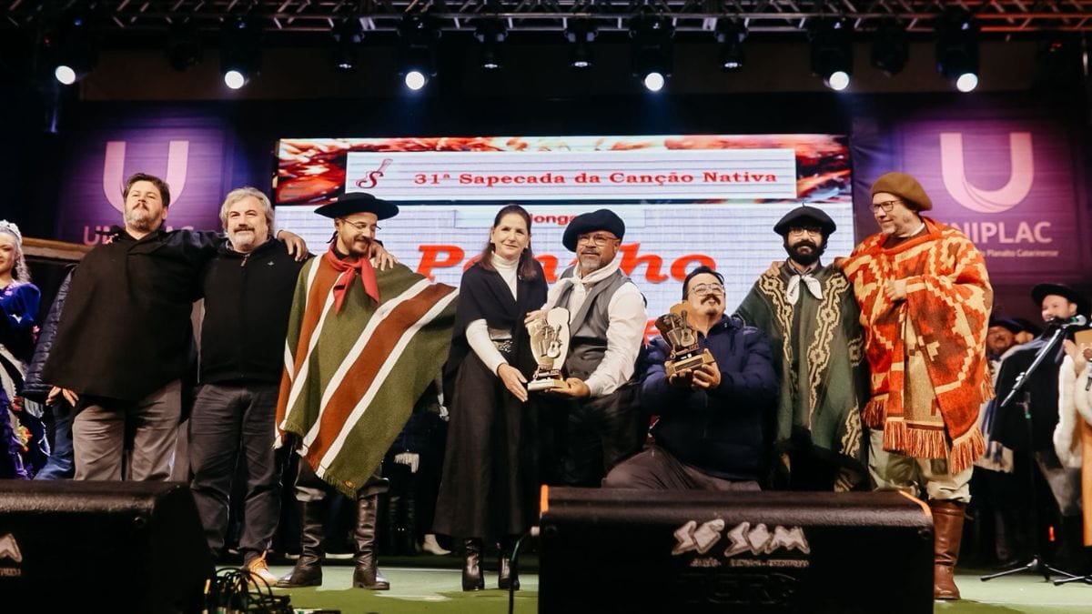 A composição “Poncho Miliquero” foi a grande vencedora da 31ª Sapecada da Canção Nativa, encerrada na noite deste domingo (15), em Lages, durante a 35ª Festa Nacional do Pinhão.