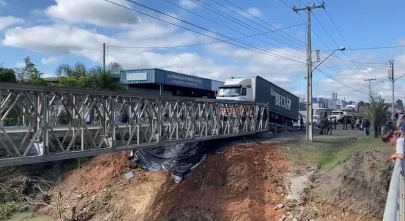 A interdição da ponte na BR-470 traz dor de cabeça para motoristas e moradores no Alto Vale do Itajaí desde segunda-feira (25). Sem poder passar nenhum veículo pela estrutura por causa de rachaduras em um dos pilares de sustentação, o caos tomou conta do trânsito. Agora, pouco mais de uma semana depois, a situação pode melhorar com a ponte provisória do Exército.