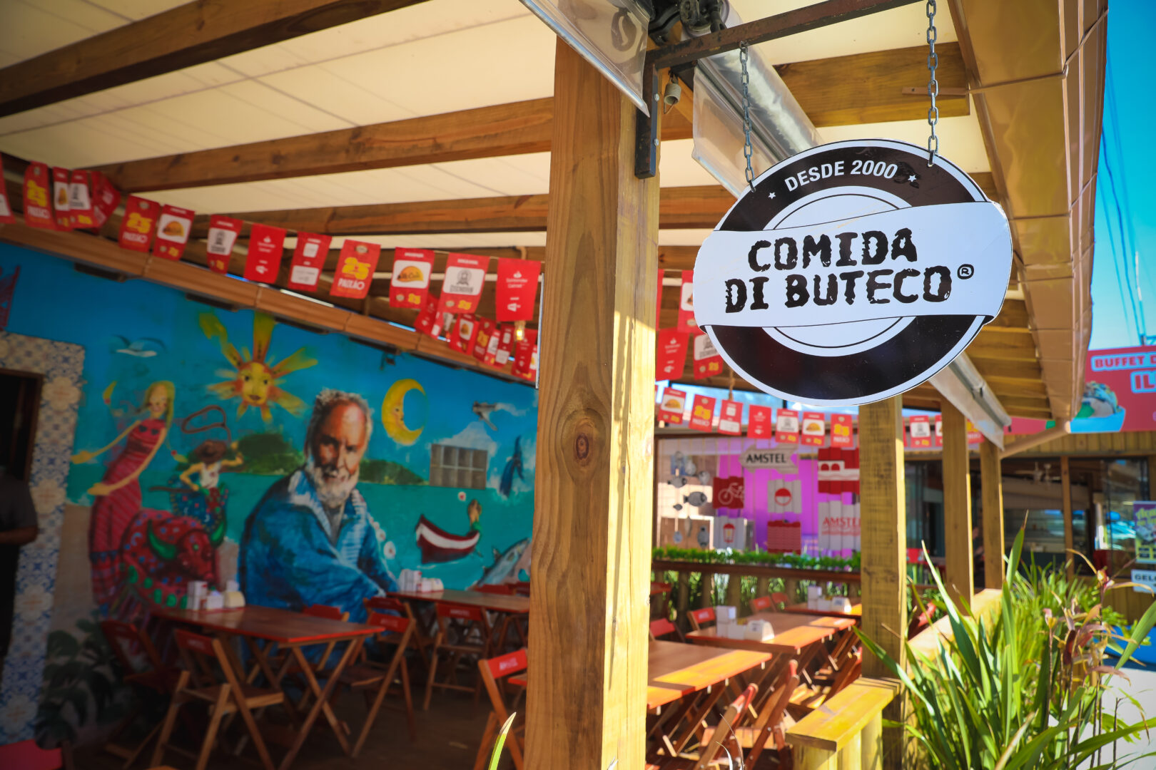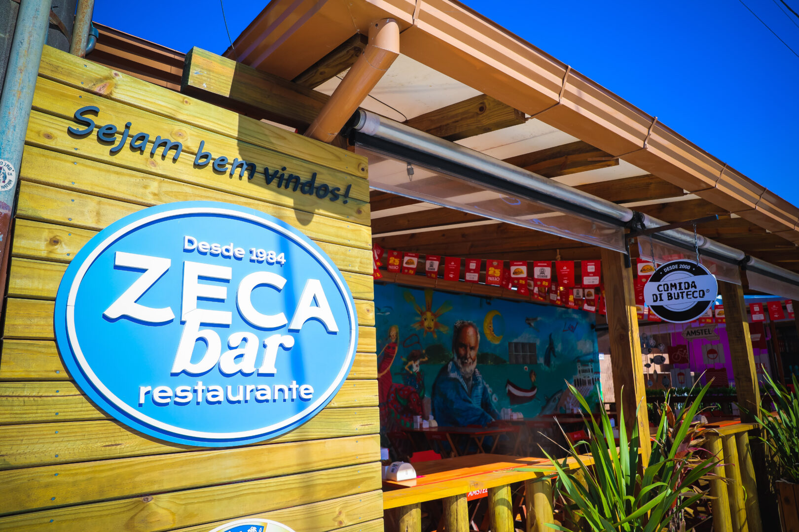Mural na entrada do restaurante homenageia Zeca, proprietário que morreu em 2017 (Foto: Wenndel Paixão, DC)