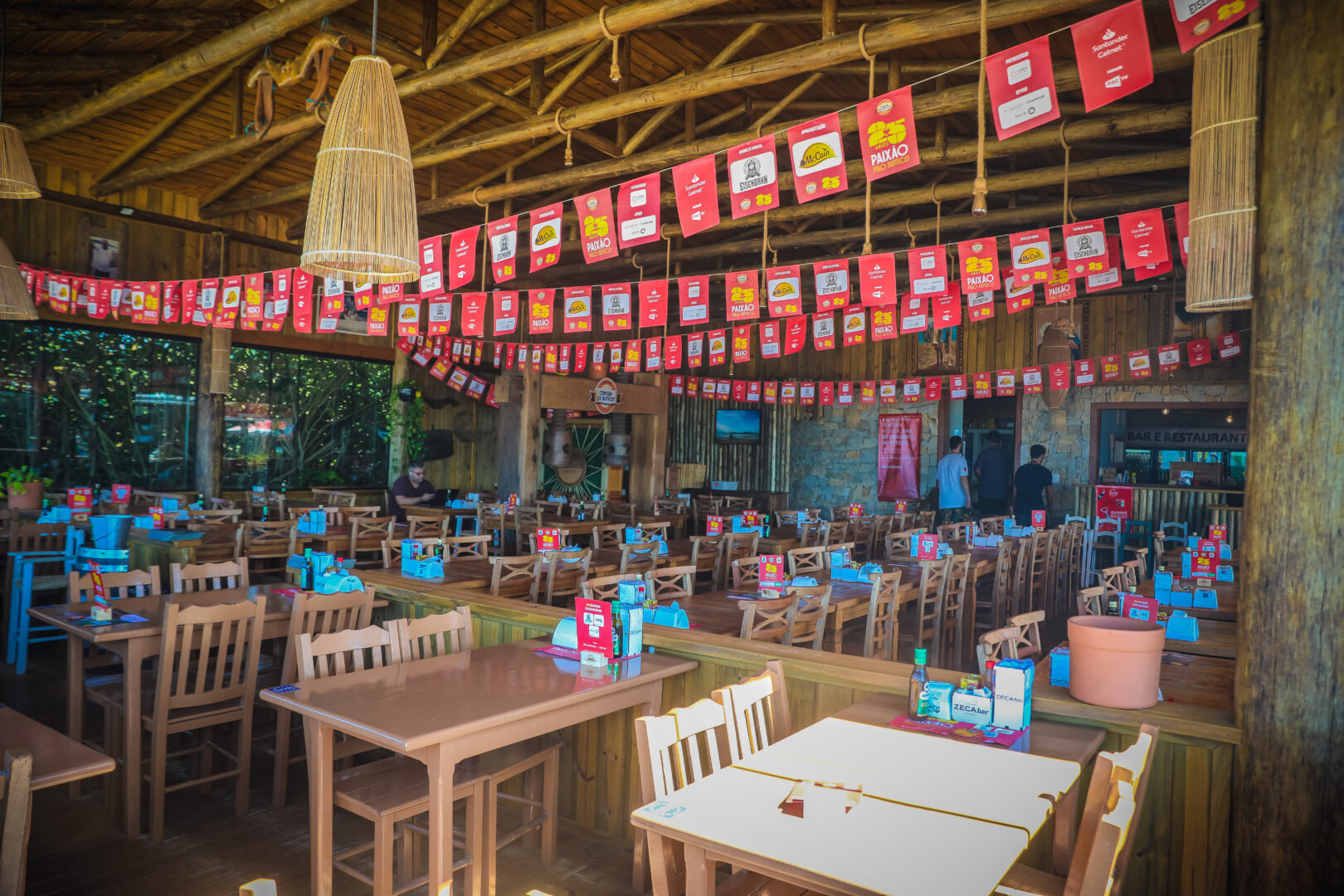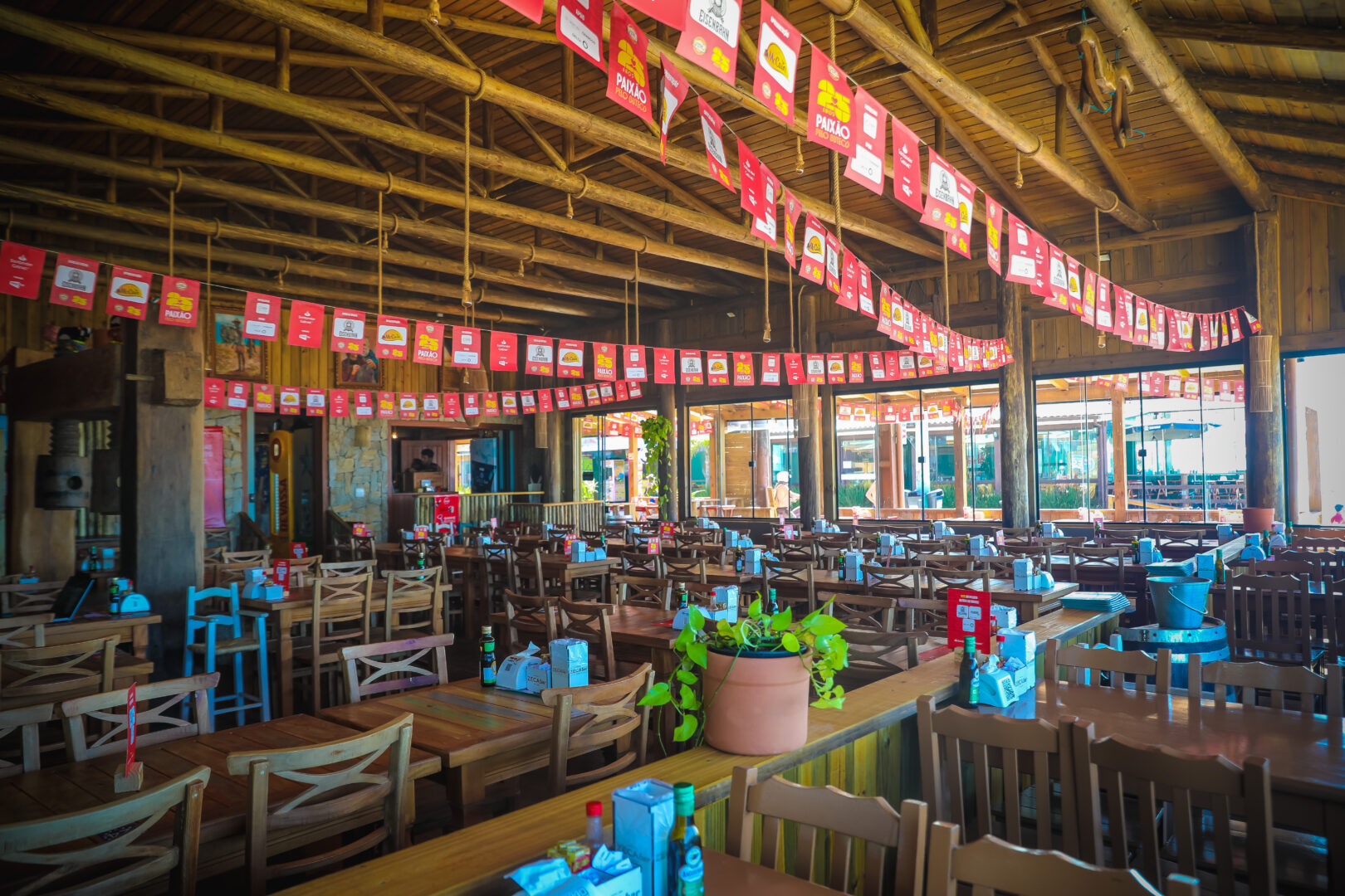Grande salão tem um teto alto, forrado de madeira, e conta com decoração tradicional (Foto: Wenndel Paixão, DC)