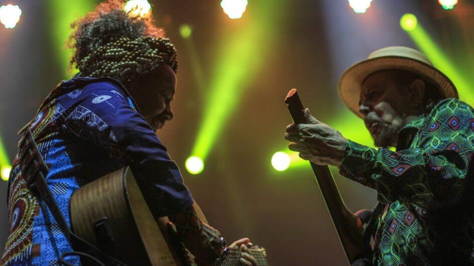 A dupla nordestina entrou no palco. A suposta dor de garganta que irritou Geraldo foi substituída por uma doce voz que, em uma simbiose com a de Chico e os violões, emocionou o público com a turnê “Violivoz”.