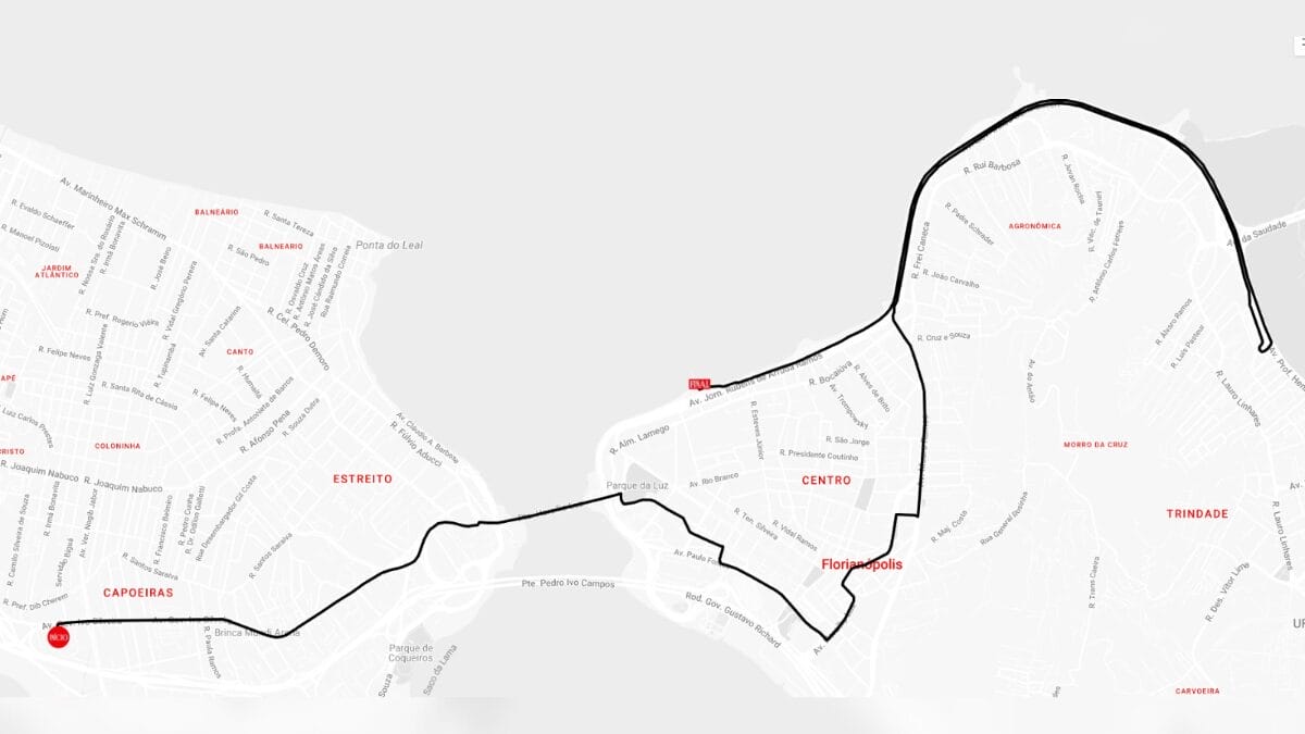 O trajeto deve iniciar na Avenida Governador Ivo Silveira, em Capoeiras, e deve terminar no trapiche da Beira-Mar Norte. Para chegar até o destino, a caravana segue pela Rua Quatorze de Julho, passa pela Ponte Hercílio Luz, vai para a Rua Conselheiro Mafra, e depois passa para Rua Francisco Tolentino, seguindo pela Avenida Paulo Fontes, Avenida Hercílio Luz, Avenida Mauro Ramos, e Avenida Governador Irineu Bornhausen.