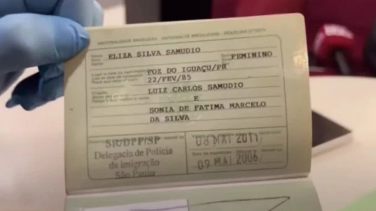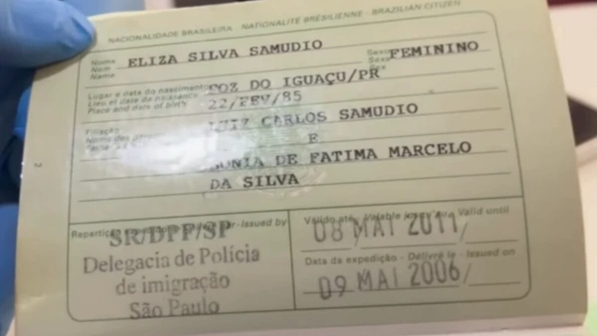 O passaporte com foto e nome de Eliza Samudio tem um registro de entrada em Portugal em 5 de maio de 2007 e foi expedido em 2006. Há apenas o registro de entrada no país e não há registros de saída e também nenhum carimbo de entrada ou saída em outro país.