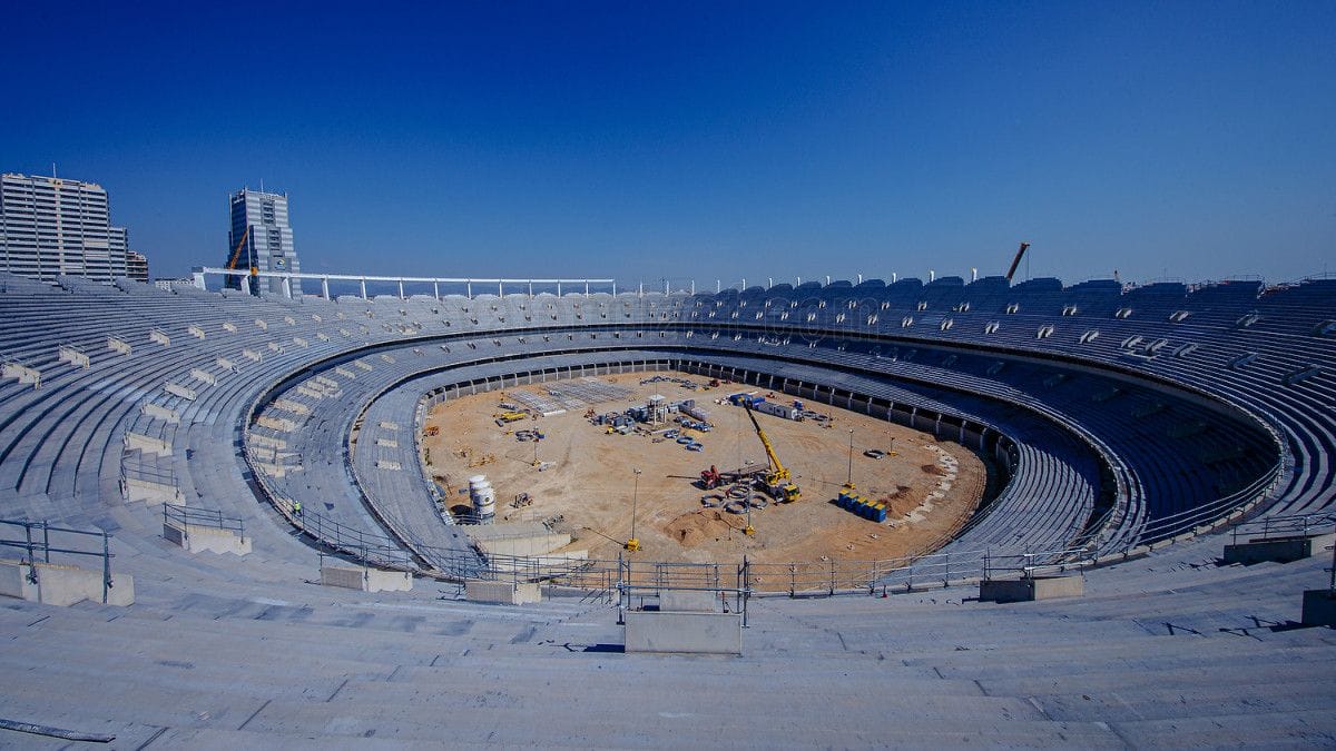 A construção do maior estádio fantasma do mundo ganhou novidades nesta semana e já é possível visualizar um progresso significativo nas obras daquela que será a nova casa do Valencia, da Espanha. De acordo com o clube, já foram instalados 30 pilares e 21 anéis de compressão no Nou Mestalla.