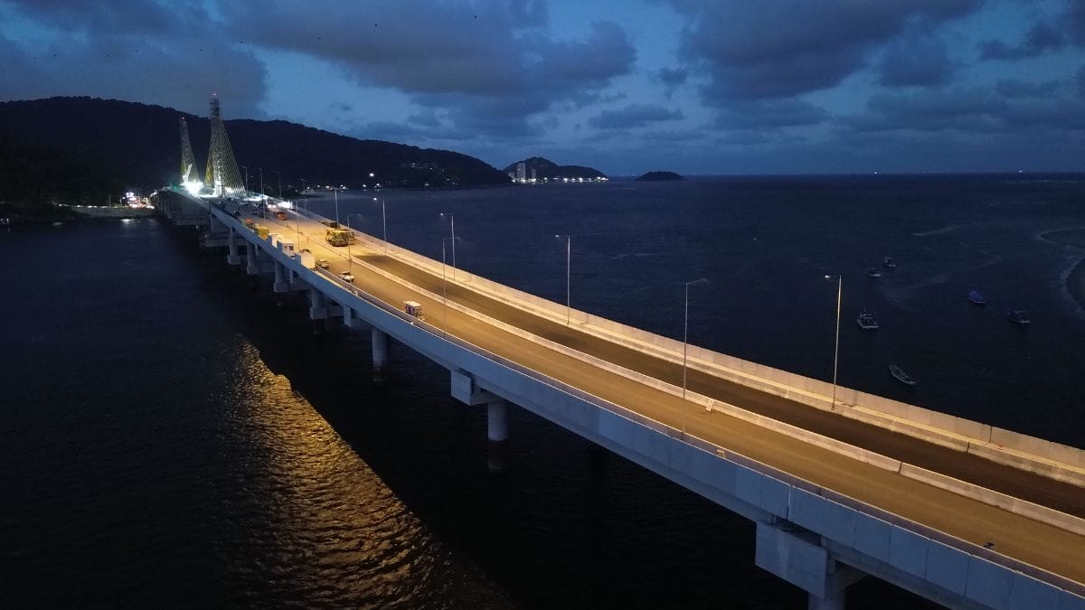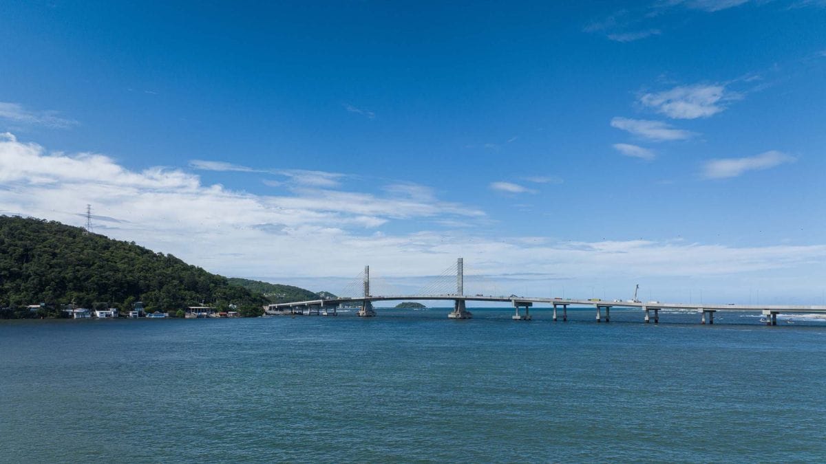 Conforme informado pela coluna de Jefferson Saavedra, no NSC Total, a obra está na reta final com inauguração marcada para o dia 29. Nesta etapa, a Ponte de Guaratuba ganhou o contorno visual definitivo no segmento estaiado, com a retirada dos andaimes e tapumes dos mastros de sustentação dos cabos. As estruturas eram utilizadas pelos trabalhadores para acesso às áreas ainda em obras.