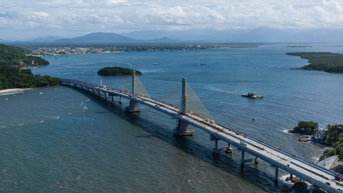 A ponte de Guaratuba, que vai ligar o município a Matinhos, está perto de ser concluída. Com 1,2 mil metros de extensão e investimento de R$ 400 milhões, ela foi construída estaiada. Os estais são cabos de aço de alta resistência que conectam o tabuleiro da ponte aos mastros e têm a função de sustentar a estrutura.