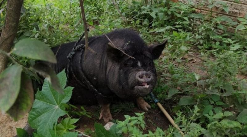 O suíno, por sua vez, foi encontrado em um terreno baldio amarrado em uma árvore e com sinal de maus-tratos. O animal foi resgatado e devolvido ao dono.