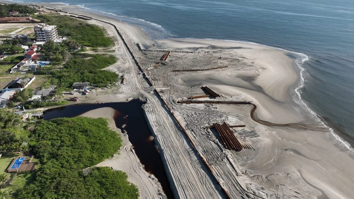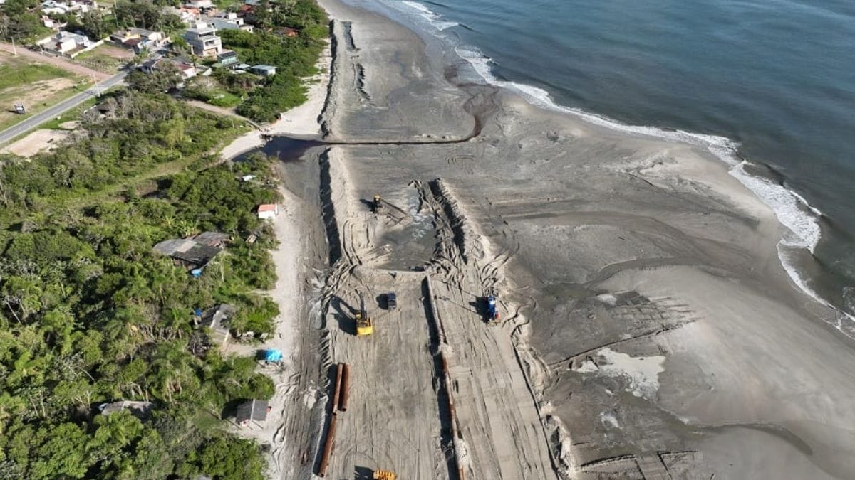 Veja fotos da obra para alargar praia de Itapoá