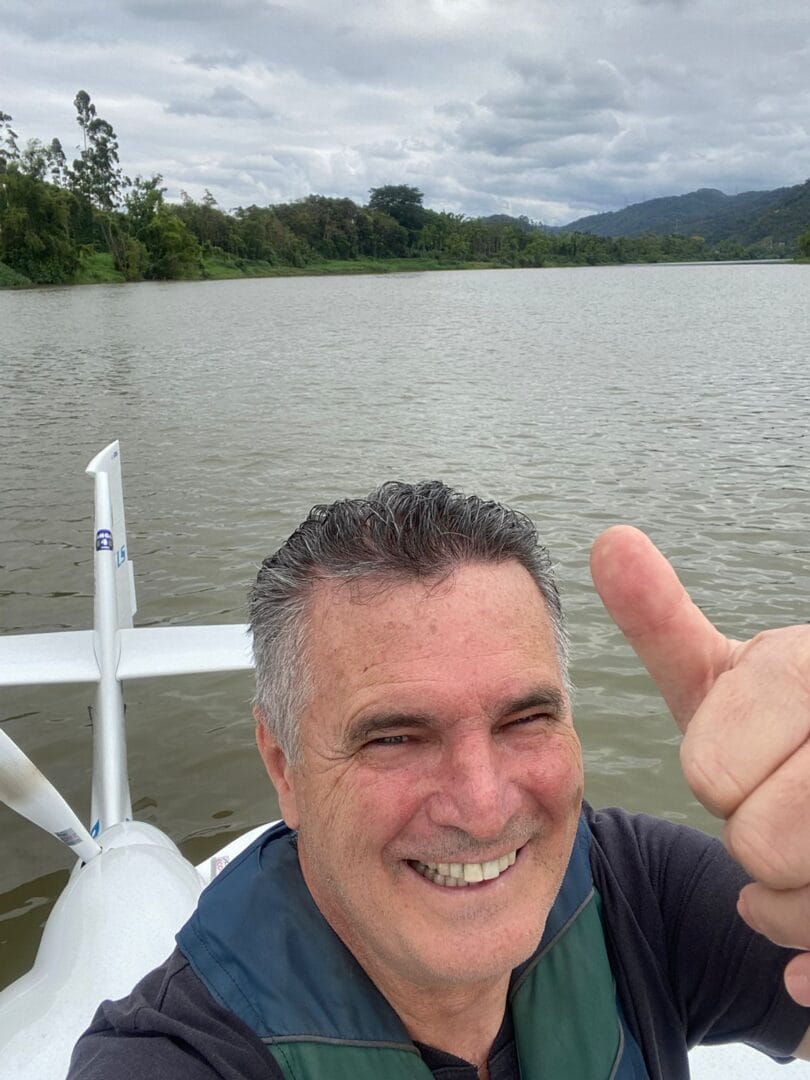 O piloto diz que o local escolhido para a primeira experiência no Rio Itajaí-Açu é maravilhoso e bem próximo à base dele, o Aeroclube de Blumenau. Volnei garante que vai voltar às águas de Gaspar.