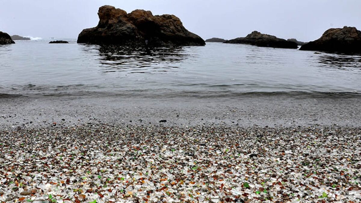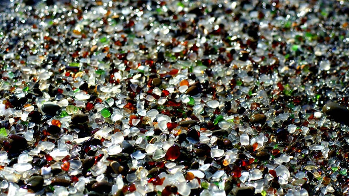 O fenômeno ocorreu porque a área serviu como depósito de lixo até 1960. Com o tempo, as ondas do Oceano Pacífico “lapidaram” os detritos de vidro, transformando-os em pedras lisas e coloridas.