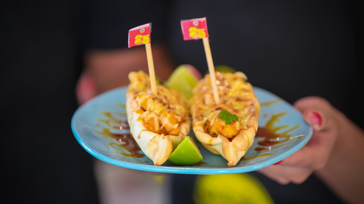 - Descrição do prato: Barquetes recheadas com camarão cremoso, regadas com melado artesanal.