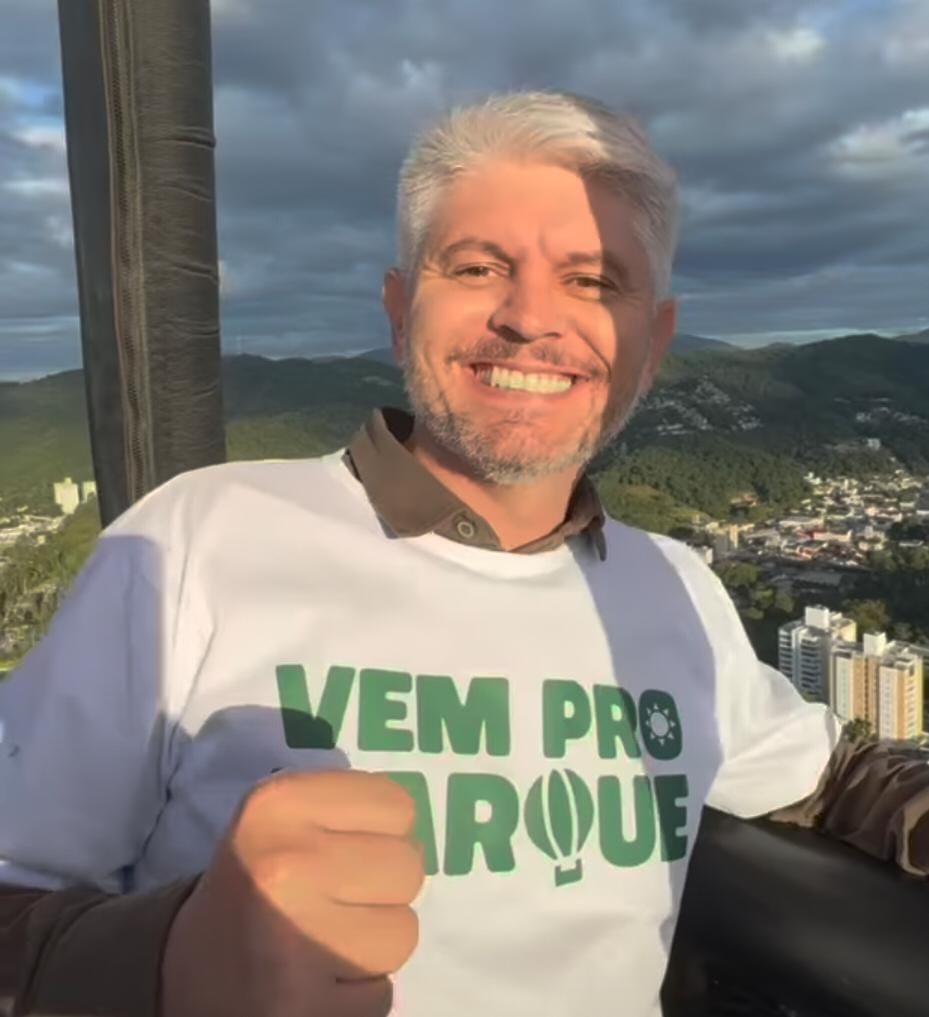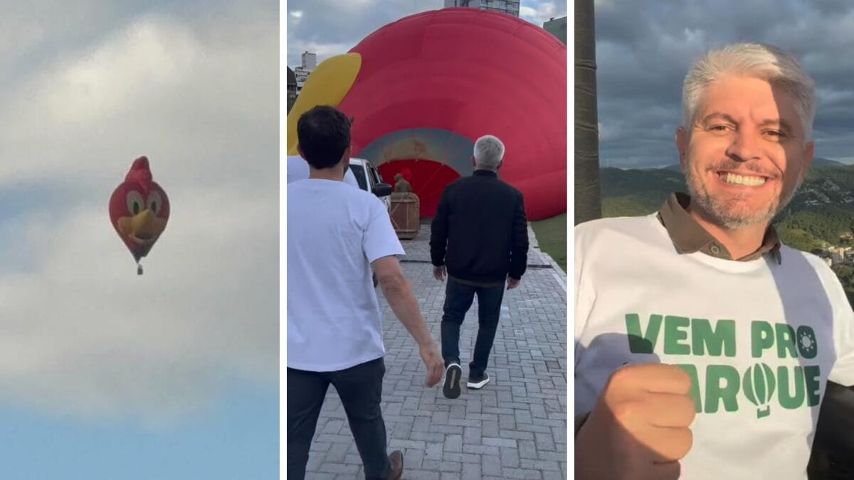 Quem estava na região central de Blumenau na tarde de quarta-feira (11) pôde observar um enorme ponto vermelho e amarelo no céu azul. Era um Pica-Pau gigante — ou melhor, um balão no formato do pássaro. Dentro dele estava o prefeito Egidio Ferrari (PL), em uma ação de divulgação da primeira edição do “Vem pro Parque”.