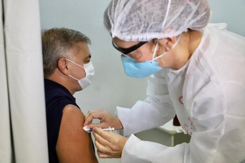 O prefeito de Florianópolis, Gean Loureiro, recebeu a vacina contra a Covid-19 na manhã desta sexta-feira (14), no Centro de Eventos Luiz Henrique da Silveira, no Norte da Capital. A cidade vacina nesta sexta e sábado pessoas com 40 ou mais com comorbidades em sistema drive-thru e de pedestre.