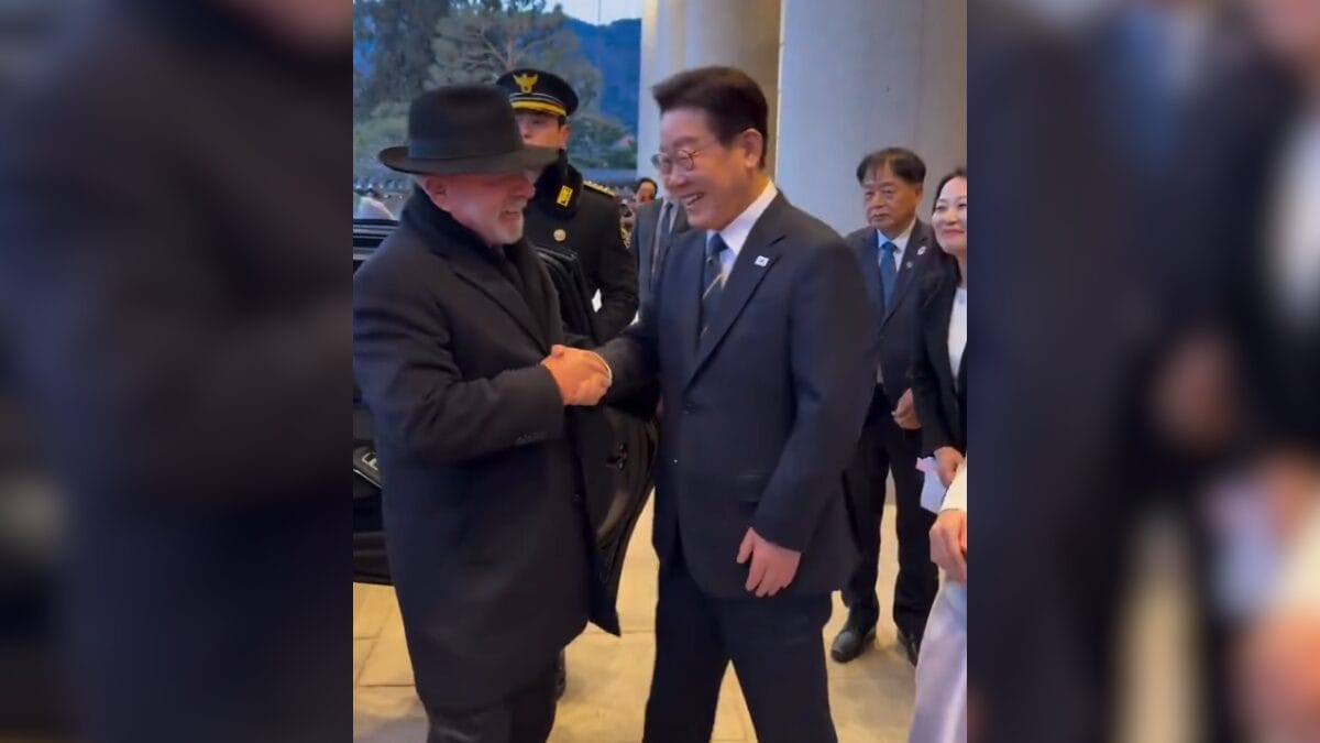 O presidente Lula republicou o vídeo do abraço entre os dois com uma mensagem de afeto ao presidente sul-coreano. “Um forte abraço ao meu irmão Presidente Lee”, escreveu. O petista desembarcou na Coreia no domingo (22) depois de uma viagem à Índia.