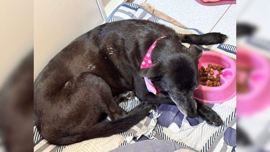 Além disso, Pretinha está sendo medicada com antibióticos para tratar a doença do verme do coração, e tomando anti-inflamatório para possíveis dores.
