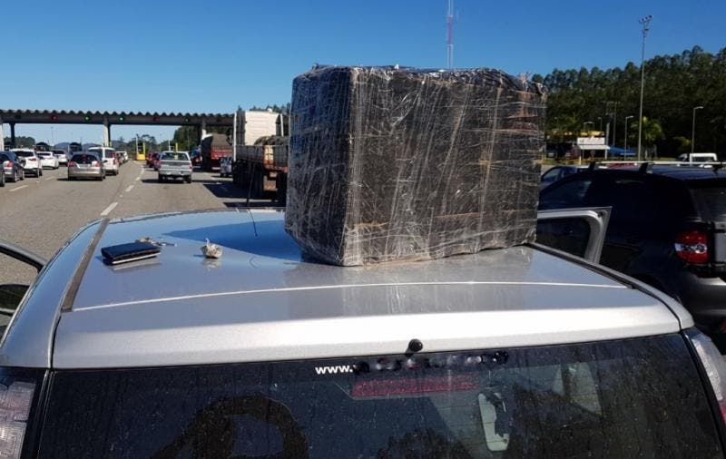 A maconha estava no porta-malas de um Fiat Uno com dois ocupantes. O motorista e o passageiro disseram à polícia que foram buscar a droga em Foz do Iguaçu (PR) e a levaria até Barra Velha (SC).