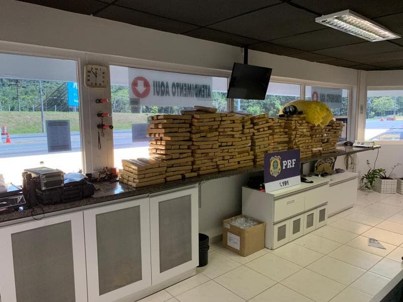 Os 527 quilos de maconha estavam divididos em tabletes. Também havia R$ 880 reais com o suspeito. Ele teria dito à PRF que vinha de Curitiba e entregaria a droga em Palhoça.O adolescente foi encaminhado à Central de Polícia Civil por atos infracionais análogos a tráfico de drogas e receptação. Assinou os documentos referente ao flagrante e, conforme a lei, foi liberado na sequência.
