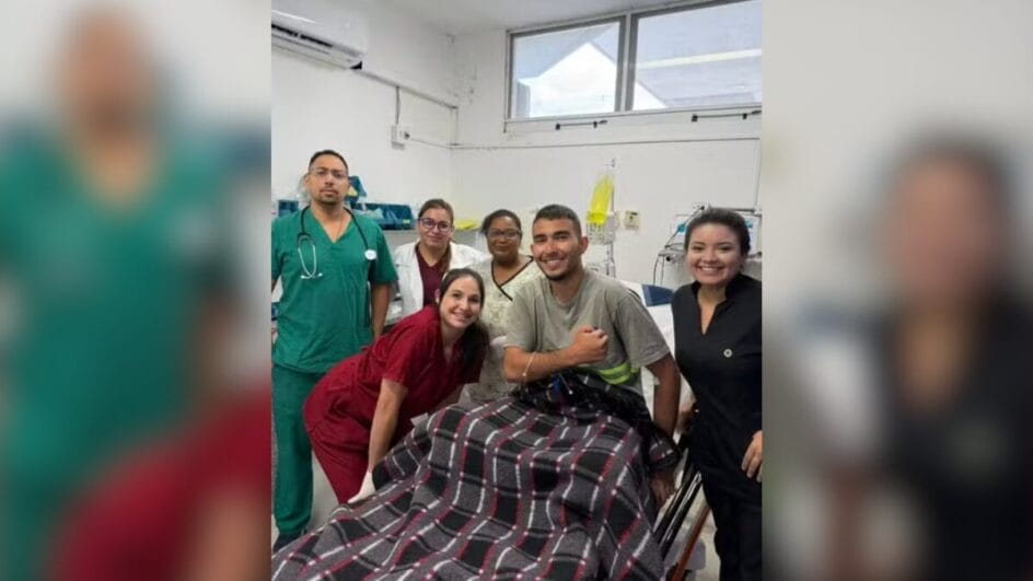 Ele já foi medicado e recebeu reidratação endovenosa, e deve passar por exames e continuar sob observação enquanto aguarda os resultados. O jovem também posou para uma foto com a equipe médica do hospital.