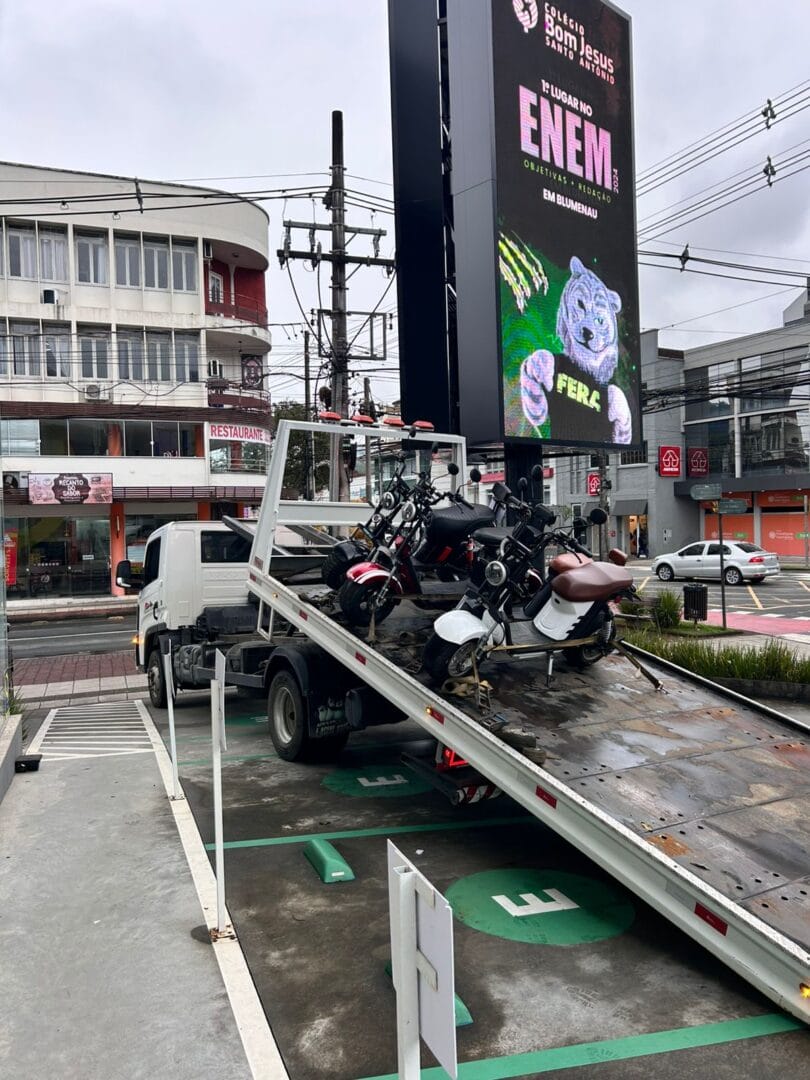 A fiscalização planejada pela prefeitura de Blumenau começou nesta segunda-feira (25) e resultou em sete motos elétricas apreendidas. Falta de emplacamento em dois ciclomotores e velocidade acima do permitido em cinco autopropelidos foram os motivos do guinchamento na região da Vila Germânica. As blitze pela cidade devem continuar nos próximos dias em uma atuação em conjunto de agentes de trânsito e policiais militares.