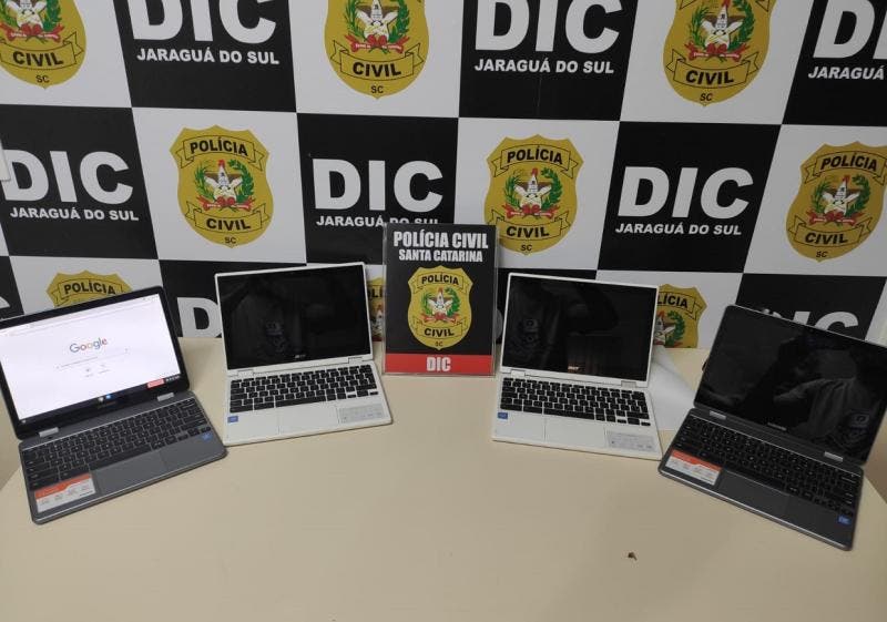 Um professor foi afastado suspeito de furtar quatro notebooks de uma escola municipal de Jaraguá do Sul. Os eletrônicos foram recuperados na casa do docente na última quarta-feira (17) pela Divisão de Investigação Criminal (DIC), da Polícia Civil.