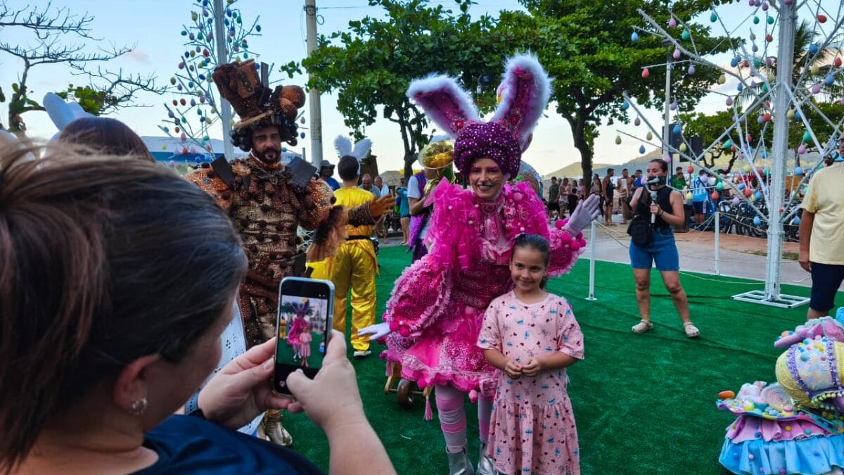 A primeira Parada de Páscoa abriu oficialmente a programação na cidade, e foi realizada nesse sábado (21), as atividades tiveram início às 17h e reuniram um grande público. A festa contou com personagens temáticos, que interagiam com as famílias e posavam para fotos com as crianças, e uma banda que animou quem passava pela orla da Praia Central.