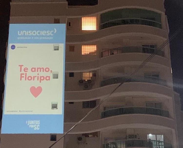 As projeções que levam às pessoas fotos e mensagens de otimismo segue avançando por Santa Catarina. A iniciativa do movimento Juntos Por SC que já passou por Joinville, Blumenau e Florianópolis, chega agora a Criciúma e Chapecó.