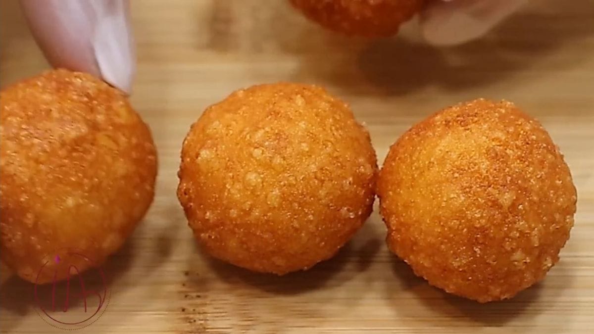 Aqueça o óleo para fritar as bolinhas em uma panela funda até que estejam bem douradas e crocantes por fora. Retire e escorra em papel absorvente ou peneira para eliminar o excesso de óleo. Sirva como preferir.