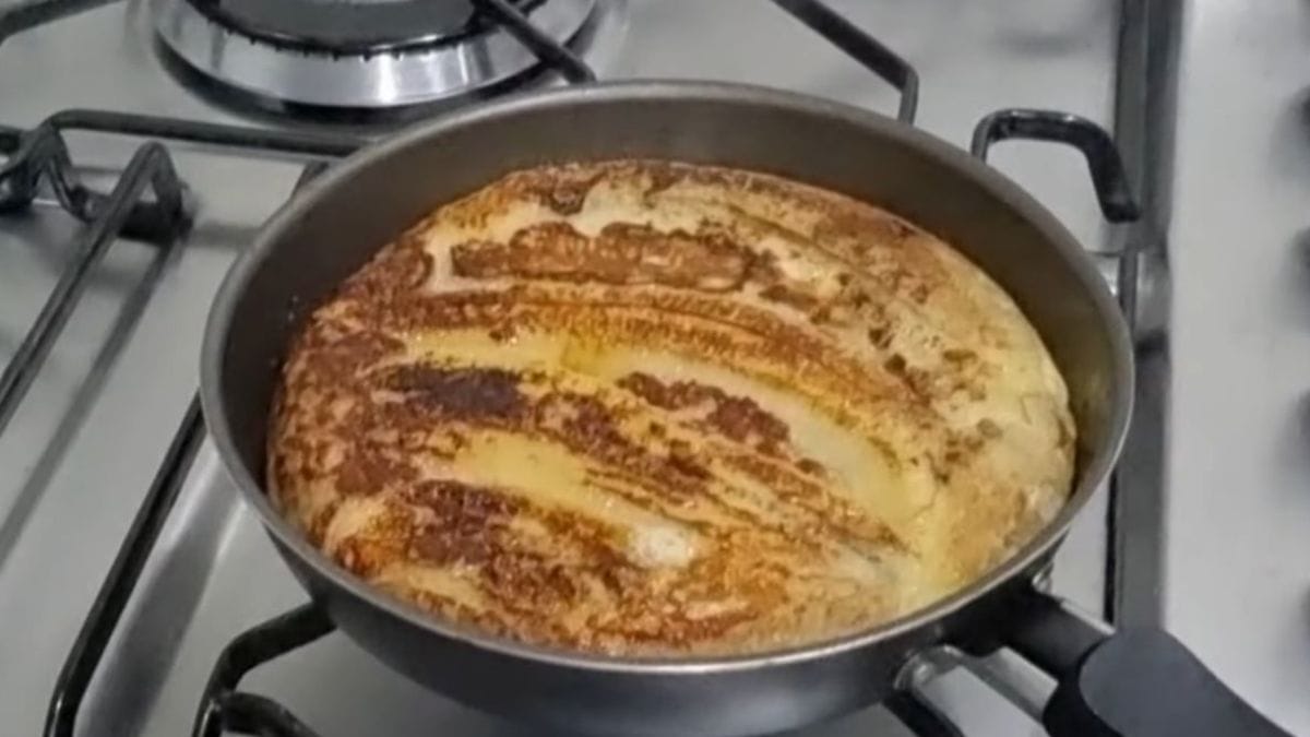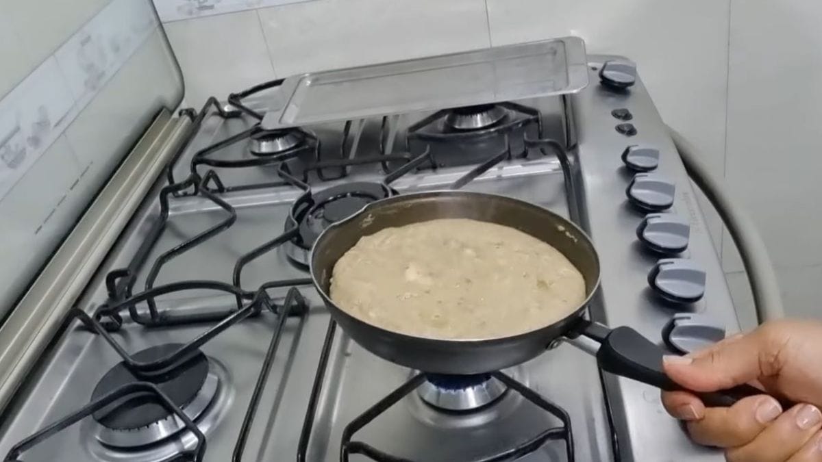Deixe cozinhar por cerca de 3 minutos em fogo médio ou até que as bordas comecem a firmar. Vire a panqueca para cozinhar o outro lado por mais 2 a 3 minutos, até dourar.