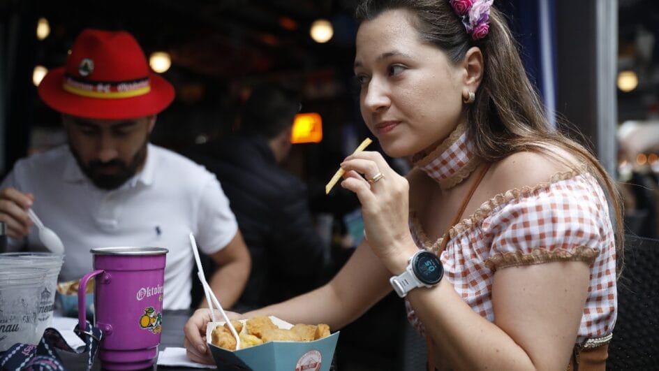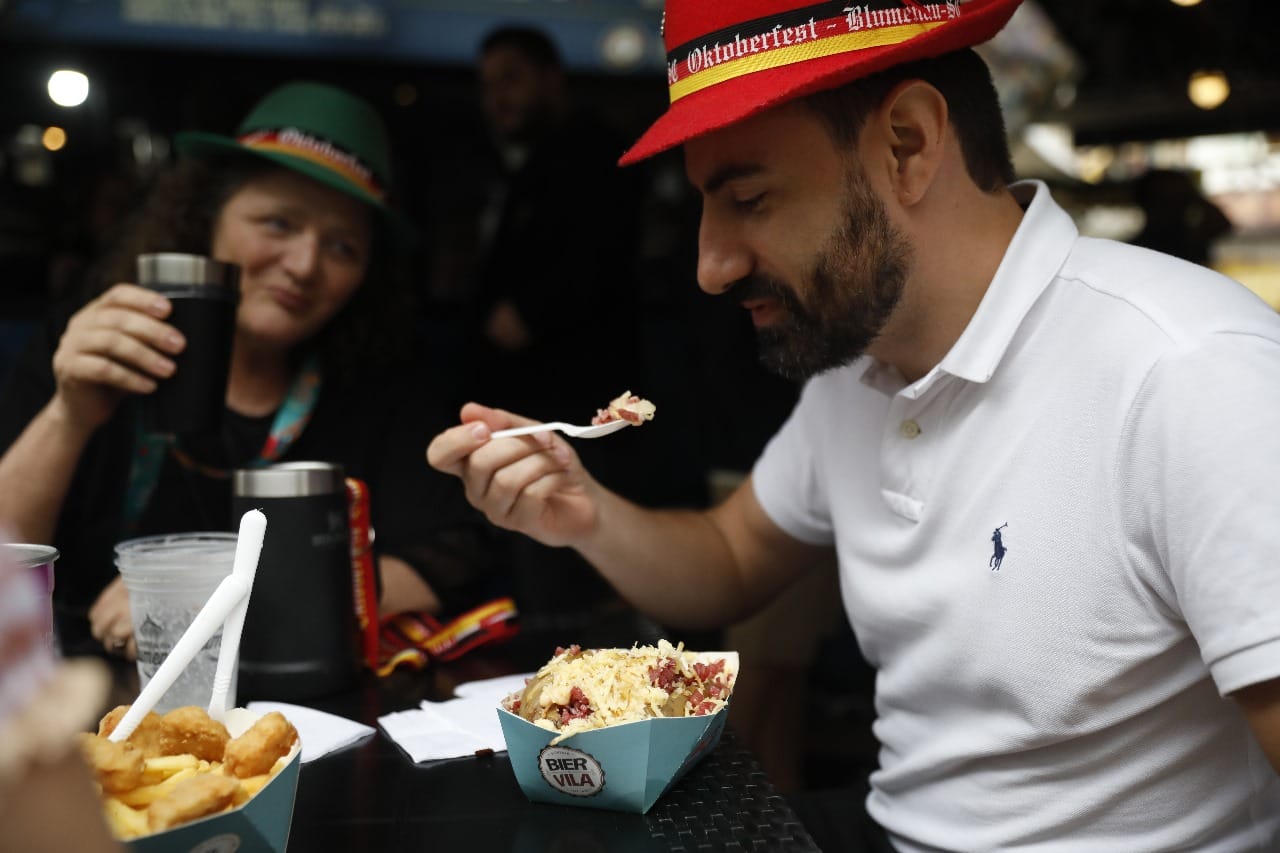 Ainda na lista dos mais em conta, é possível se alimentar com menos de R$ 30 e apreciar os tradicionais bretzel, cuca, linguiça com chucrute, torresmo, Currywurst e salsichão. Os menos abertos à culinária alemã têm ainda, na mesma faixa de gasto, alternativas que vão desde uma salada até batata-frita e pastel.