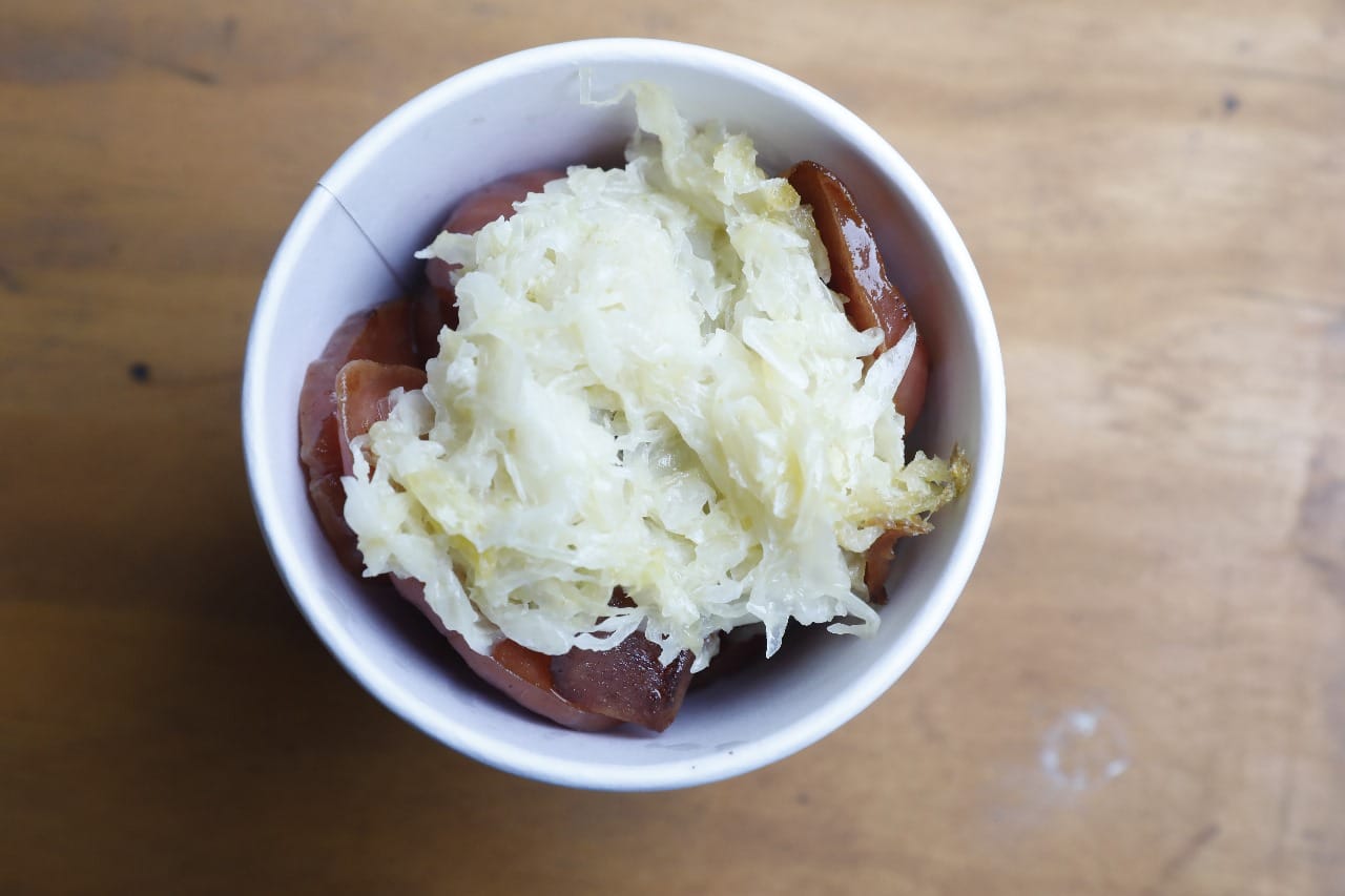 - Porção linguiça Blumenau com chucrute (200g): R$ 25. Onde encontrar: Restaurante Alemão Batata.