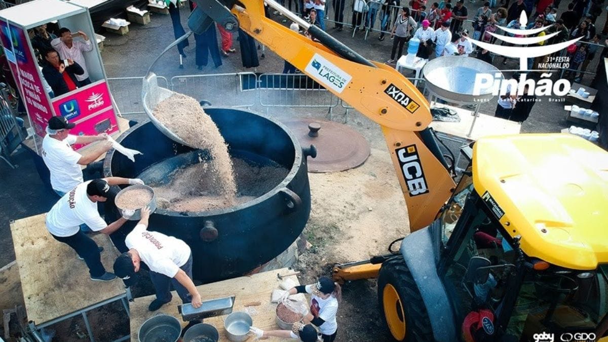 Quem já sentiu o cheirinho do pinhão cozido no frio da Serra catarinense sabe o quanto essa semente é símbolo de tradição, sabor e memória afetiva. Mas, no dia 23 de junho de 2019, durante a Festa Nacional do Pinhão em Lages, esse carinho virou recorde: a festa serviu a maior paçoca de pinhão do mundo.