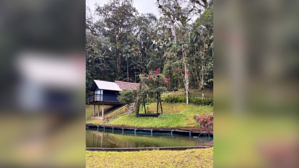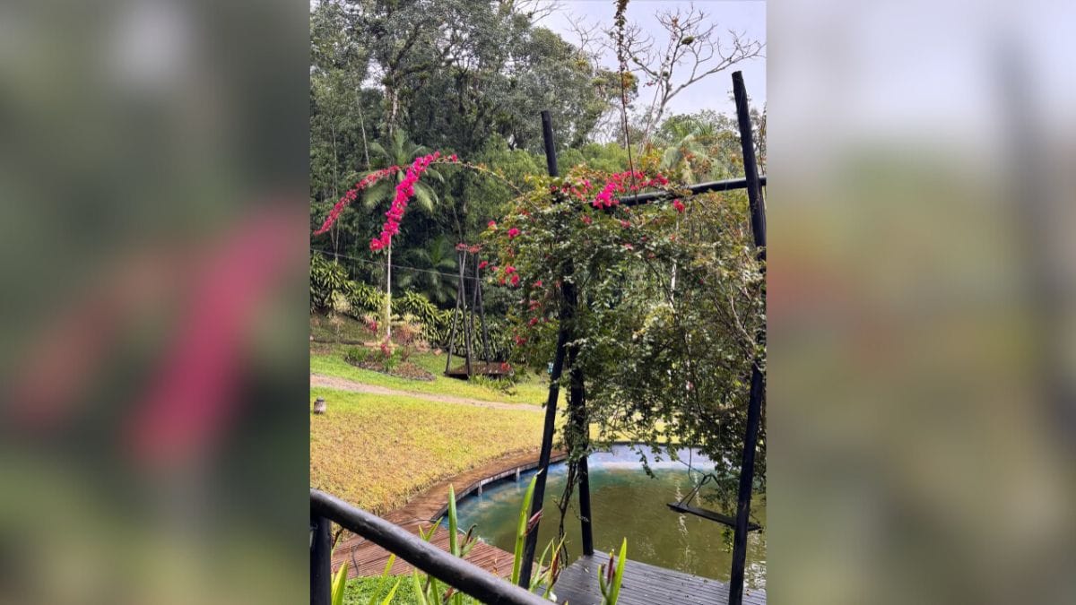 Os três chalés estão na área rural do Quiriri, cercados por mata nativa, rios e cachoeiras. No coração da propriedade, um lago completa o cenário e reforça o clima romântico que transforma a estadia em uma experiência especial.
