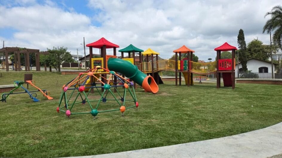 O espaço passou por revitalização completa e recebeu a implantação de academia ao ar livre, instalação de deck em madeira plástica com bancos e lixeiras, nova iluminação pública, reforma da quadra poliesportiva, além de calçadas e paisagismo.