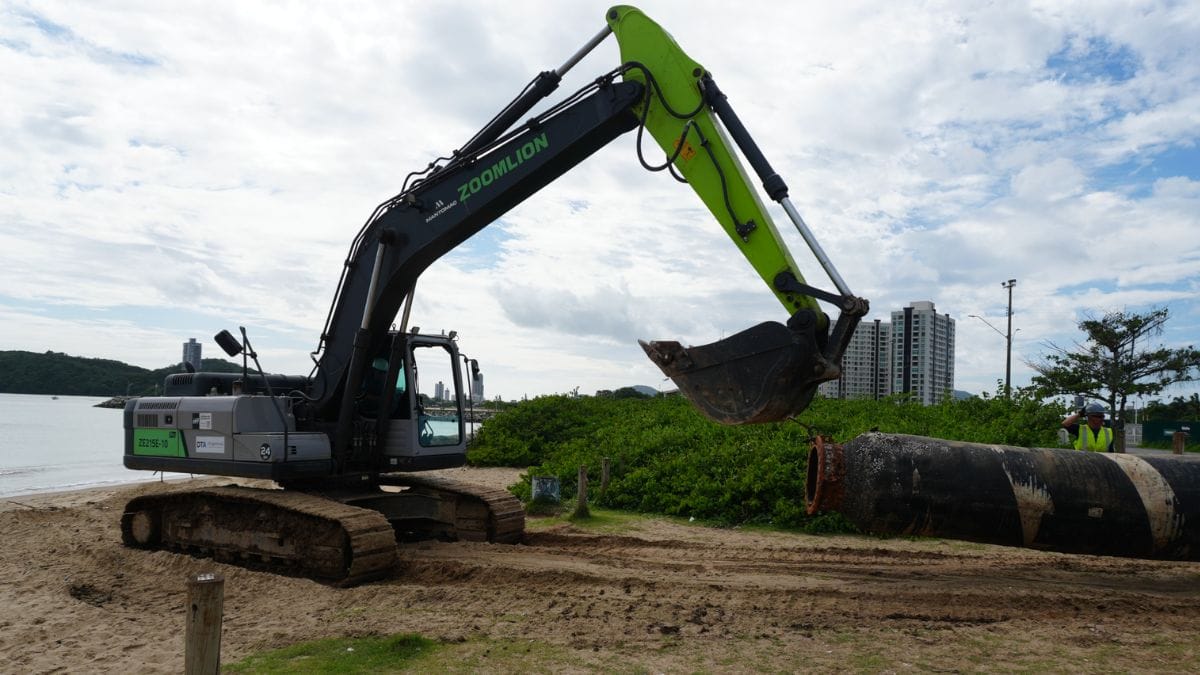 Neste primeiro momento, os trabalhos estão concentrados na região sul da obra, na Praia da Barra do Rio, com a instalação de uma linha de recalque que varia entre 1.200 e 1.500 metros de extensão, para posteriormente ser realocado no mar.