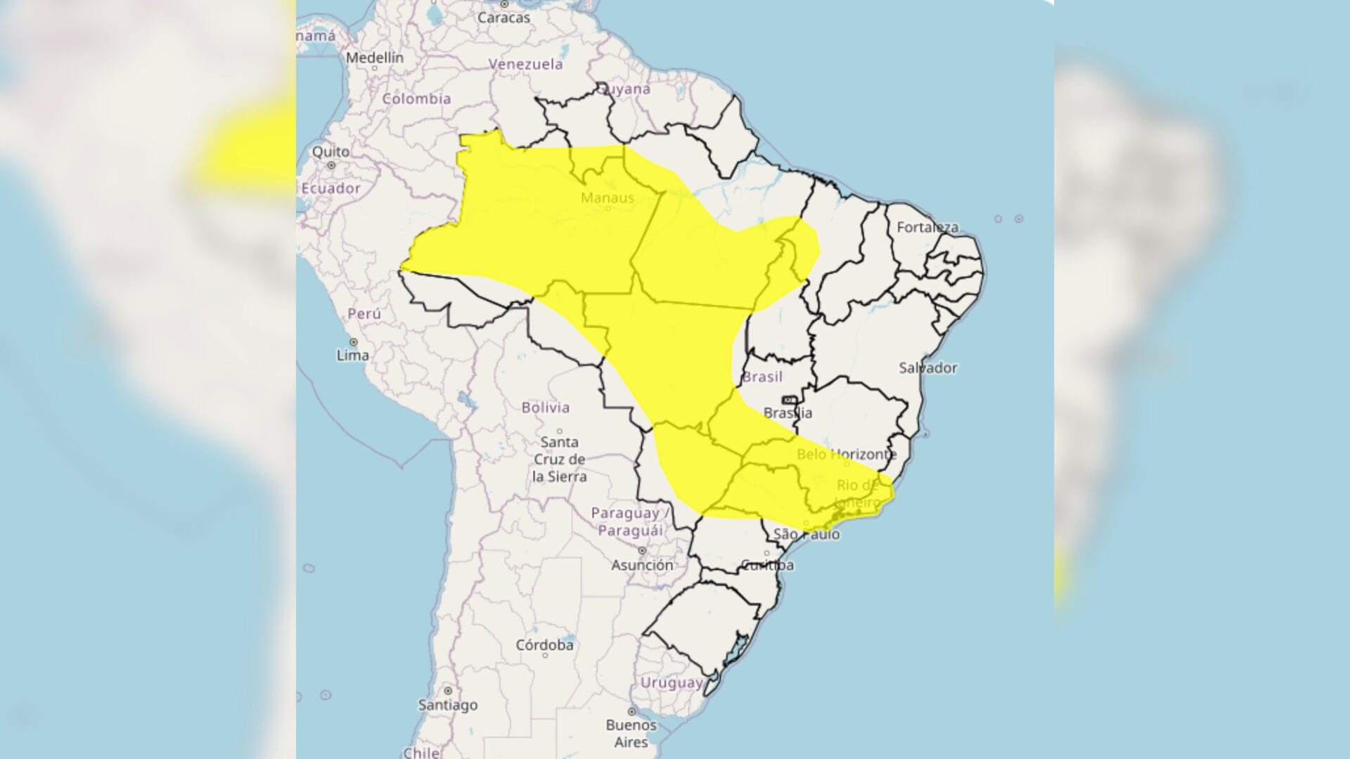 O Instituto Nacional de Meteorologia (Inmet) emitiu, nesta sexta-feira (10) um alerta amarelo de chuvas intensas para grande parte das regiões do país. O aviso vale até às 10h de sábado (11) e engloba 1.864 municípios brasileiros.