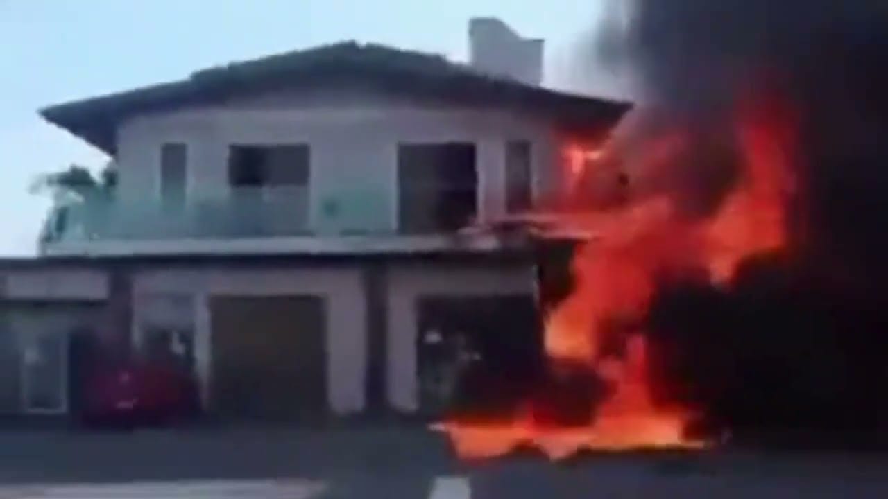 O acidente gerou fogo e fumaça no local. Registros feitos por moradores da região circulam nas redes sociais.