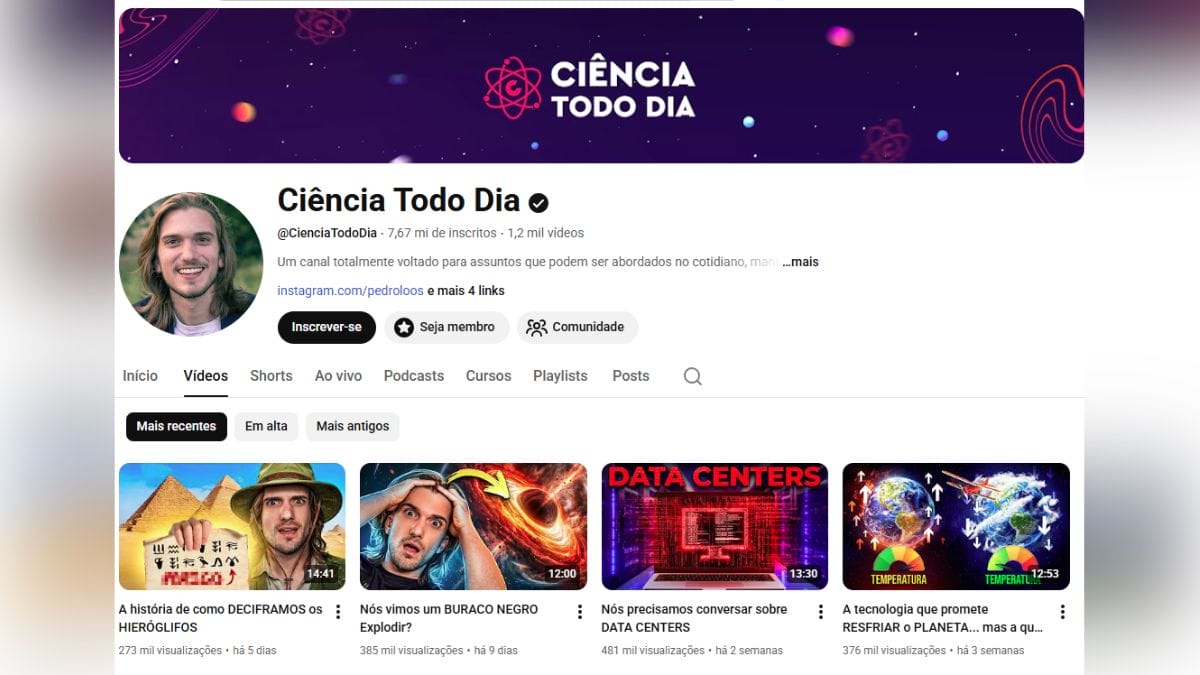 Nascido em Brusque e atualmente morador de Balneário Camboriú, Pedro soma 7,6 milhões de inscritos no canal do projeto no YouTube. O número é mais do que o dobro do registrado em julho de 2022, quando a iniciativa já era considerada um sucesso. Nesta semana, ele venceu na categoria Ciência do Prêmio Ibest, que reconhece os destaques da internet.
