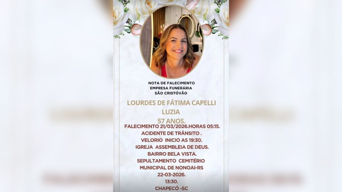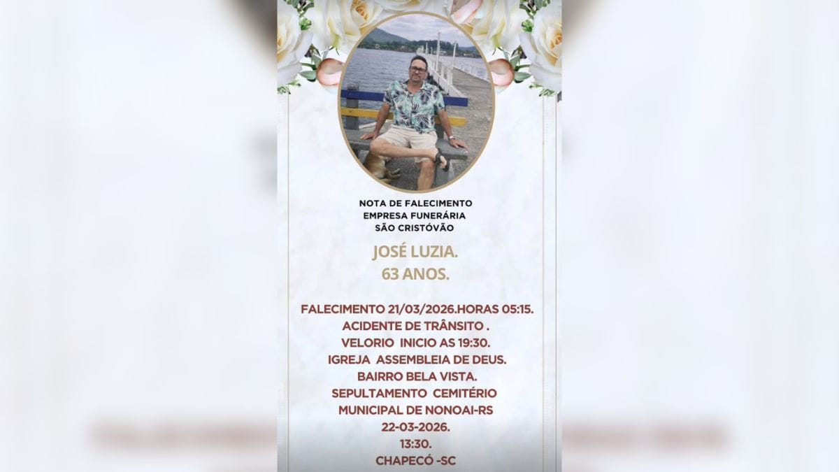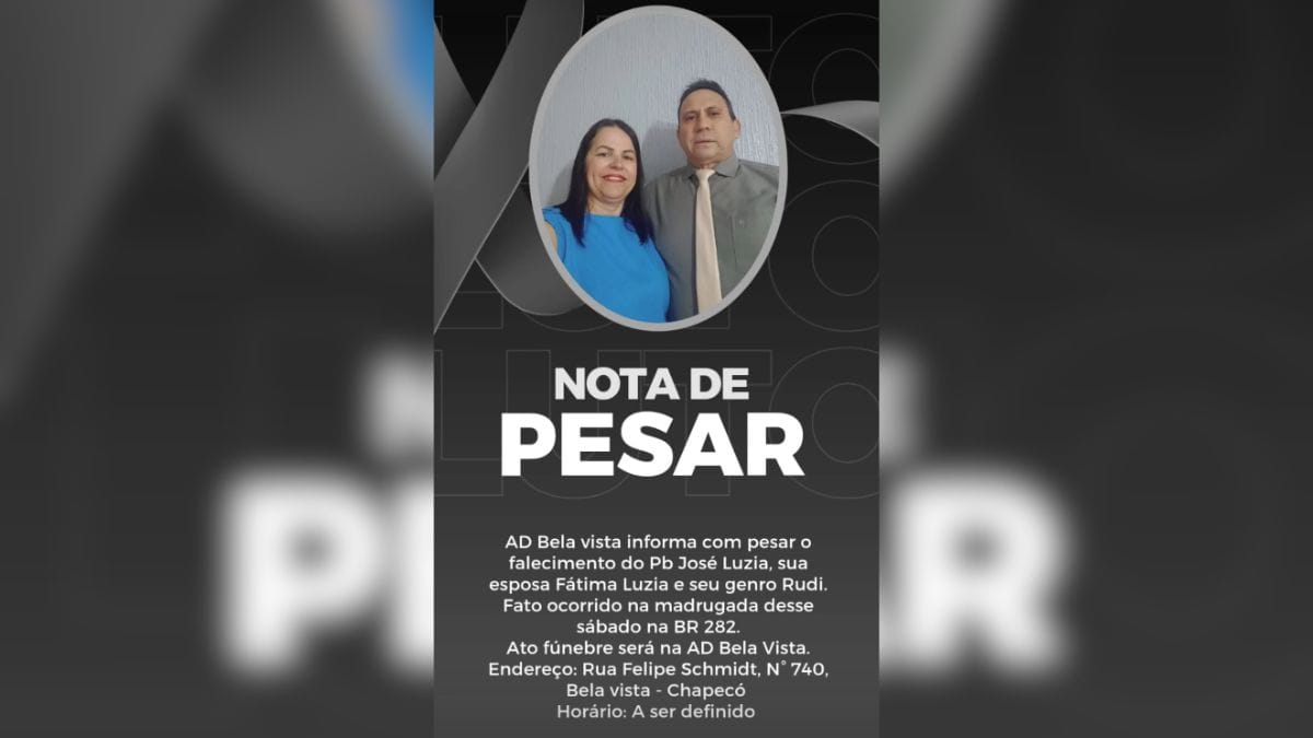 Os velórios de Fátima e José ocorrem neste domingo (22), na igreja Assembleia de Deus, no bairro Bela Vista, em Chapecó. O sepultamento será no cemitério municipal de Nonoai (RS), às 13h30min.