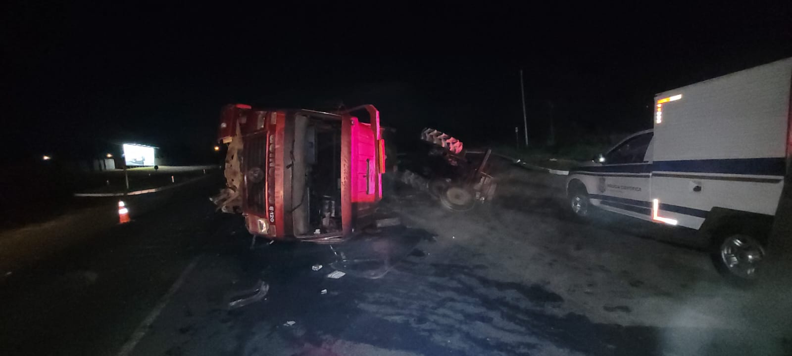 O acidente aconteceu pouco depois das 20h, em frente ao Aspen Condomínio Clube. O carro onde estavam as vítimas bateu na lateral do caminhão, que transportava um trator e acabou tombando na pista.