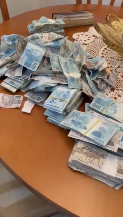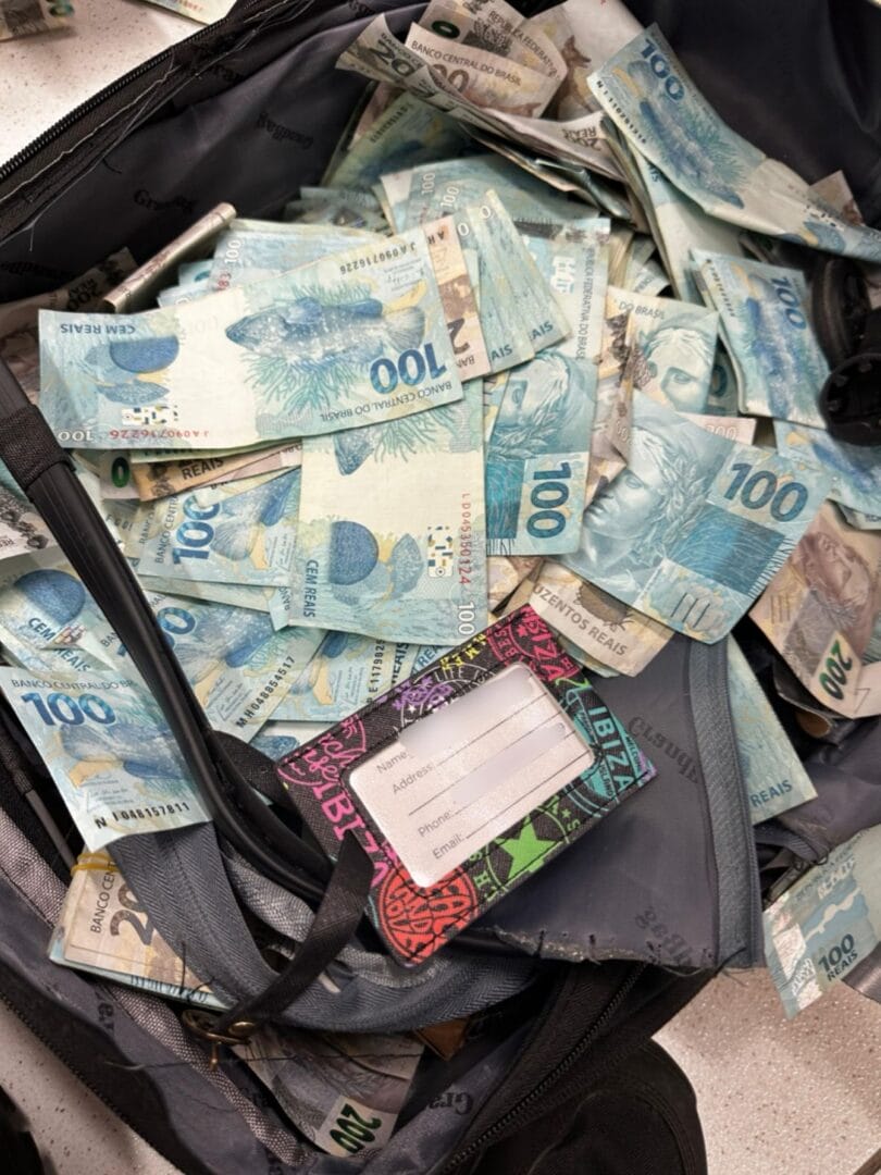 De acordo com os agentes, o valor total na mala era de R$ 429 mil. Além do dinheiro em espécie, dois carros de luxo, dois aparelhos celulares e vários documentos foram recolhidos no imóvel em Balneário Camboriú e também em uma propriedade em Itapema. Ninguém foi preso.