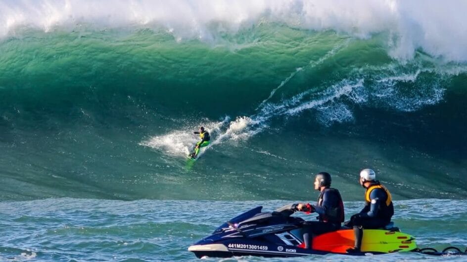 – Os gráficos mostravam ondas passando dos 20 metros. Quando a gente acordou tinha bastante vento. A gente achou que o vento ia baixar, mas ganhou força. Foi instinto de sobrevivência, com ondas gigantescas, deu para pegar uma bomba. Foram poucos os que pegaram porque o mar estava kamikaze – relatou Jacaré.