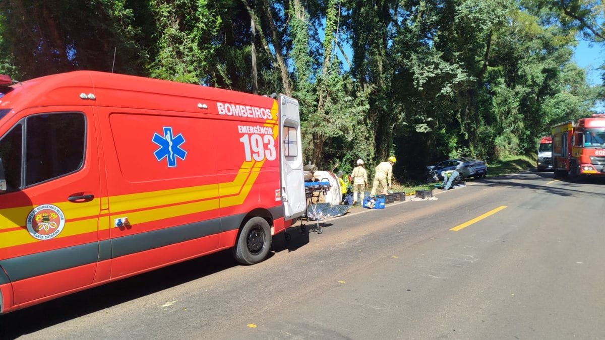 Segundo o Corpo de Bombeiros Militar de Santa Catarina, a colisão foi frontal. Com a força do impacto, a Spin ficou lateralizada e teve o teto completamente arrancado.