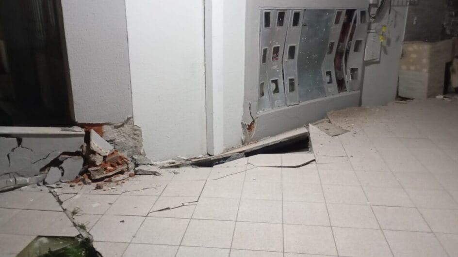 Um prédio no Centro de Itajaí precisou ser evacuado na noite de quarta-feira (15) após moradores perceberem rachaduras nas paredes e vidros quebrando. Parte da edificação cedeu durante a noite. A estrutura do prédio, agora, será avaliada pela Defesa Civil de Itajaí.