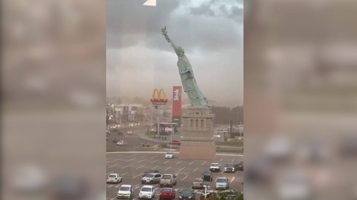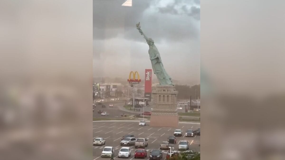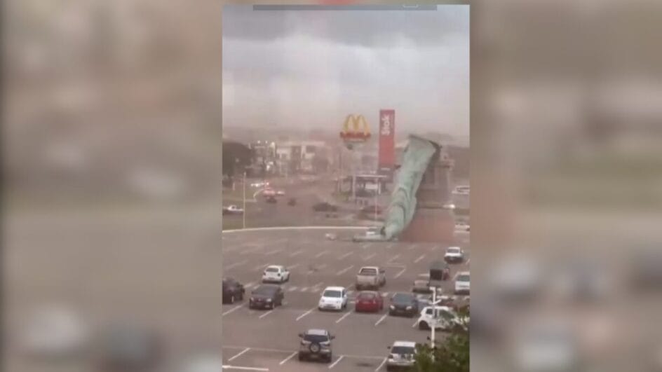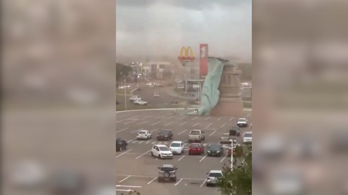 As rajadas de vento responsáveis por derrubar a estátua da Havan em frente à loja de Guaíba, no Rio Grande do Sul, chegaram a 85 km/h durante o temporal dessa segunda-feira (15), informou a prefeitura de Porto Alegre. Segundo a Defesa Civil, ao menos 49 municípios reportaram danos. Com informações do g1.