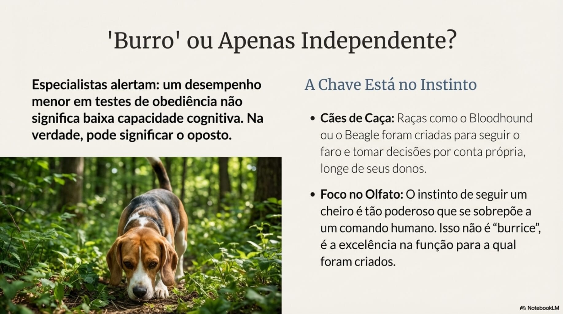 No fim das contas, muitos cães classificados como “menos inteligentes” são, na prática, mais independentes, menos subservientes e com impulso natural forte, o que não tem relação direta com capacidade cognitiva.