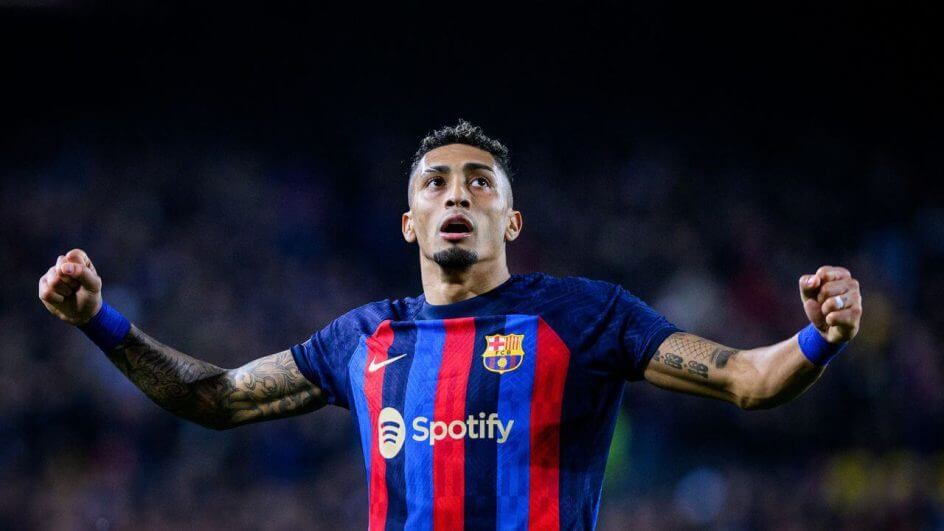 Gol: Raphinha (Barcelona), aos 47 minutos do primeiro tempo