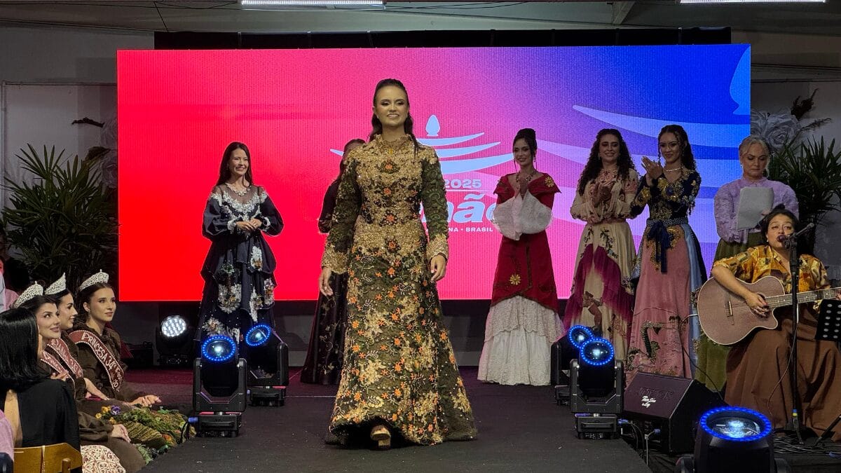A iniciativa de usar os vestidos de edições passadas da Festa do Pinhão para o desfile foi uma homenagem à história do evento, resgatando a evolução dos trajes que marcam a tradição da realeza lageana.