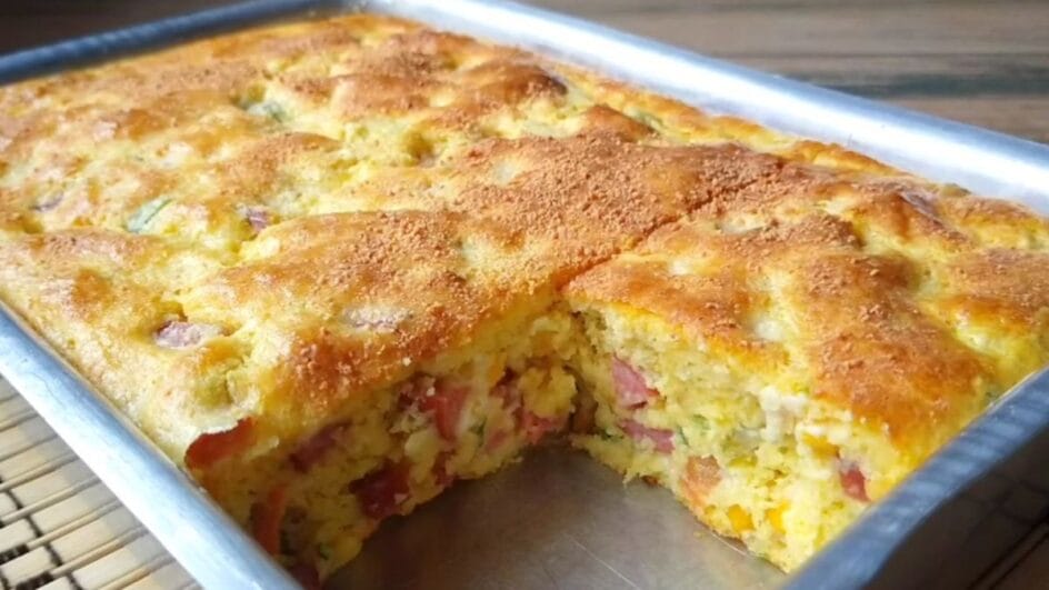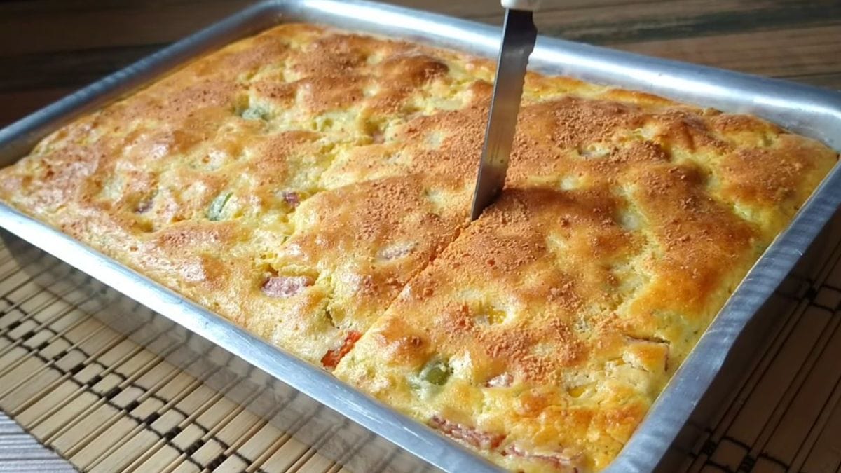 A receita é super prática de fazer em casa. Com ingredientes acessíveis, esse bolo salgado é ótimo para surpreender seus amigos e familiares.